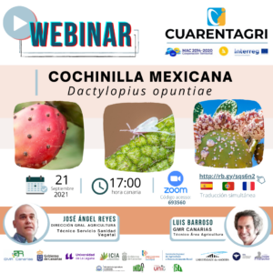 El próximo martes 21 de septiembre, tendrá lugar un nuevo Webinar, desarrollado en el marco del proyecto CUARENTAGRI , sobre “Dactylopius opuntiae” (Cochinilla Mexicana), abierto